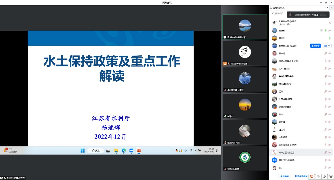 2022年12月30日,由常熟市水利局主办,北京林丰源生态环境规划设计院有限公司、江苏省水土保持学会承办的“常熟市2022年水土保持工作培训”于线上顺利召开,培训由北京林丰源主持,特邀请江苏省水利厅杨逸辉高工,南京林业大学林杰教授作为培训老师进行授课。参加培训的人员有常熟市各镇人民政府、各街道办事处、各园区水土保持工作负责人员,各镇、街、园区在建生产建设项目水土保持工作负责人员及相关水土保持中介机构代表等近30家单位、合计48人。