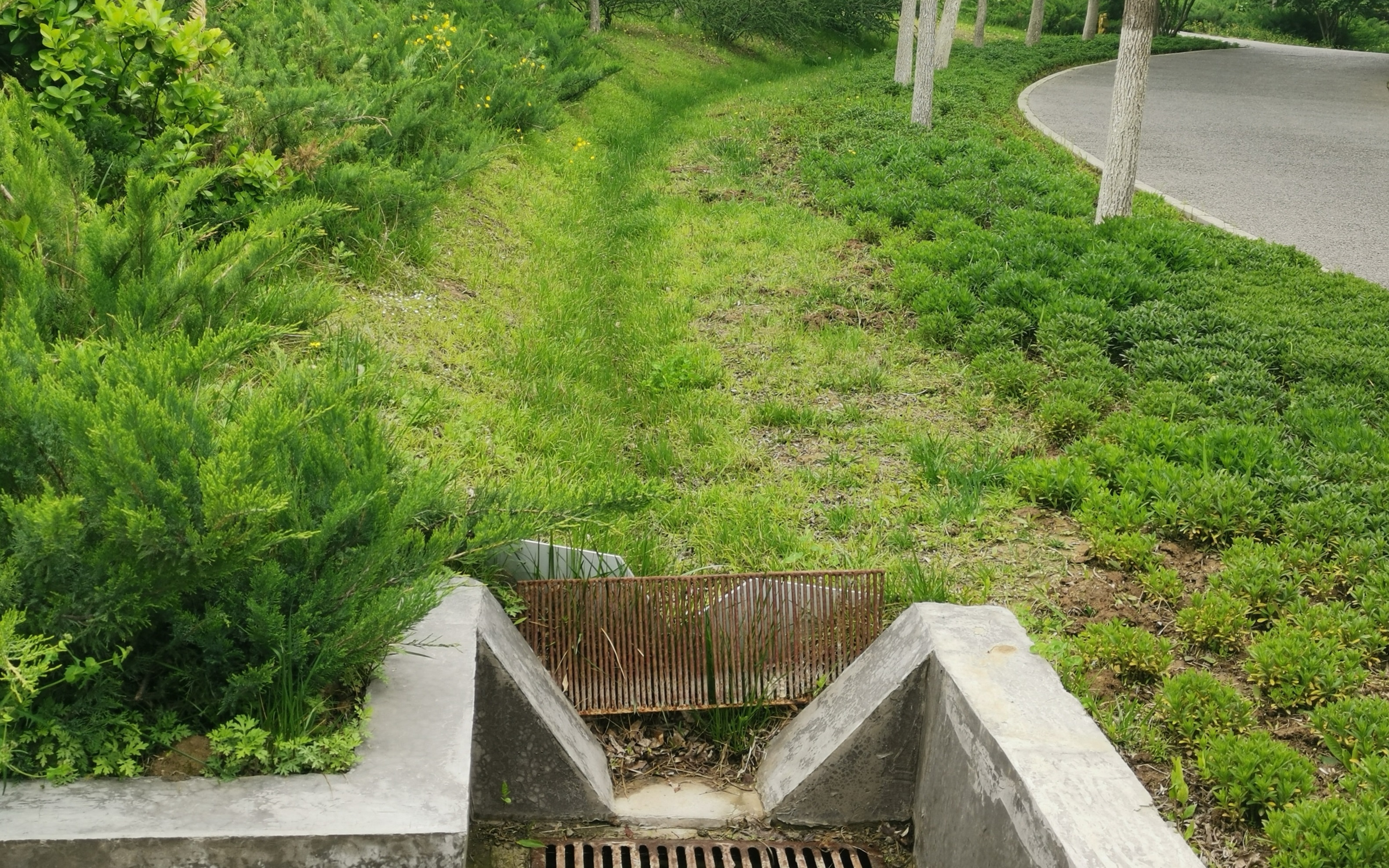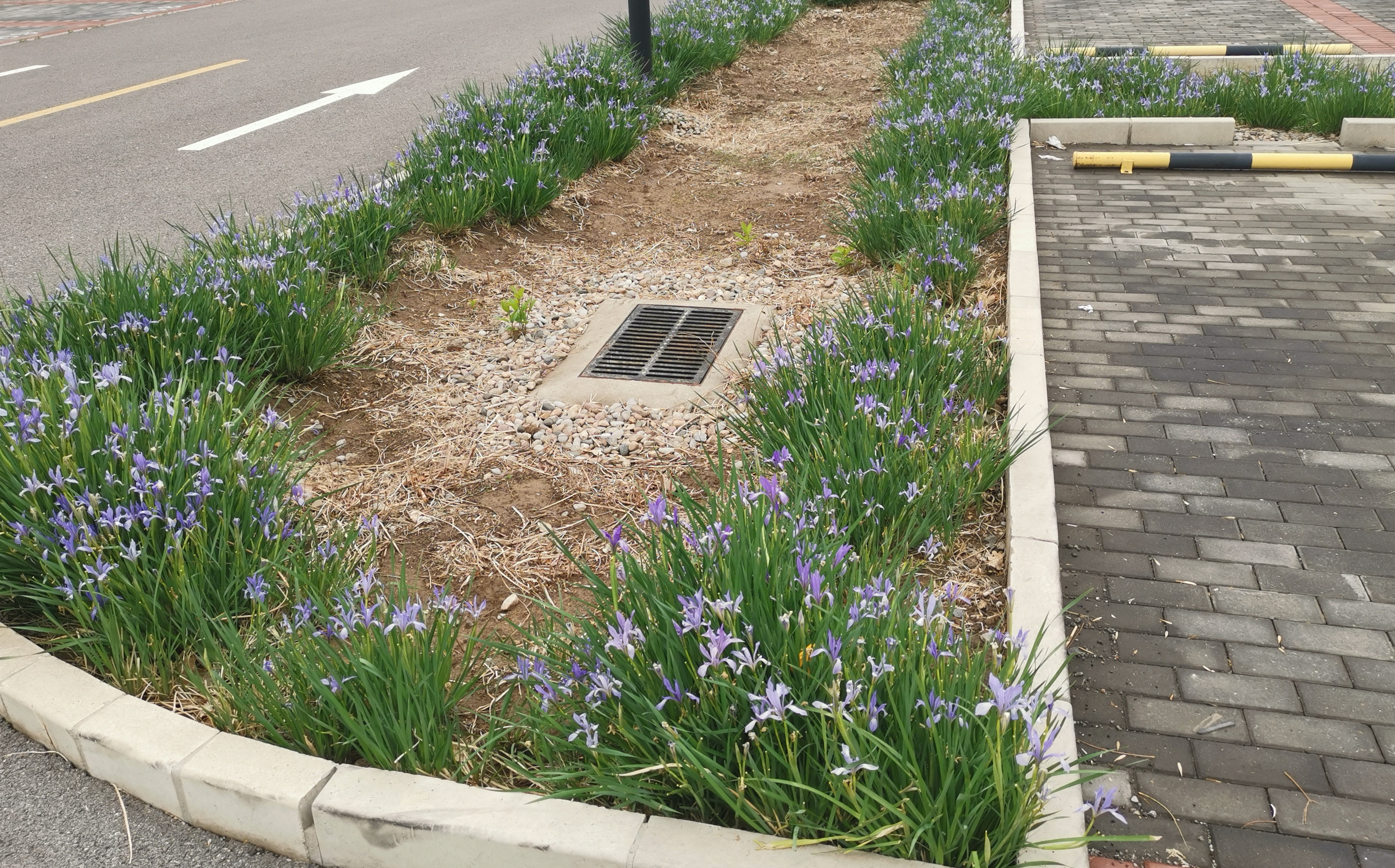 科创十七街设置了路边生物滞留带,主要对路面雨水进行调蓄、净化,雨水经生物滞留带净化、渗管收集后排入市政管网或周边河道。